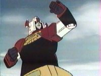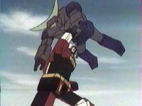 Wie schon im vorherigen Post kann ich nur ein was zu alten englischen Synchronsprechern sagen: BLUARGH! Irgendwie klingen die alle, wie von der Straße aufgegabelt und mit diesen Elektrogabeln, womit man Kühe und andere Nutztiere in den Stall eintreibt, zum Sprechen gezwungen. Ich habe noch nie jemanden so monoton sprechen gehört wie den Sprecher von Afro-Ninja Kyoshiro. Einziger Lichtblick: Kazuya’s Stimme während er Daimos steuert. Die haben tatsächlich diesen wunderbaren Markenzeichen-Echoeffekt reingetan.